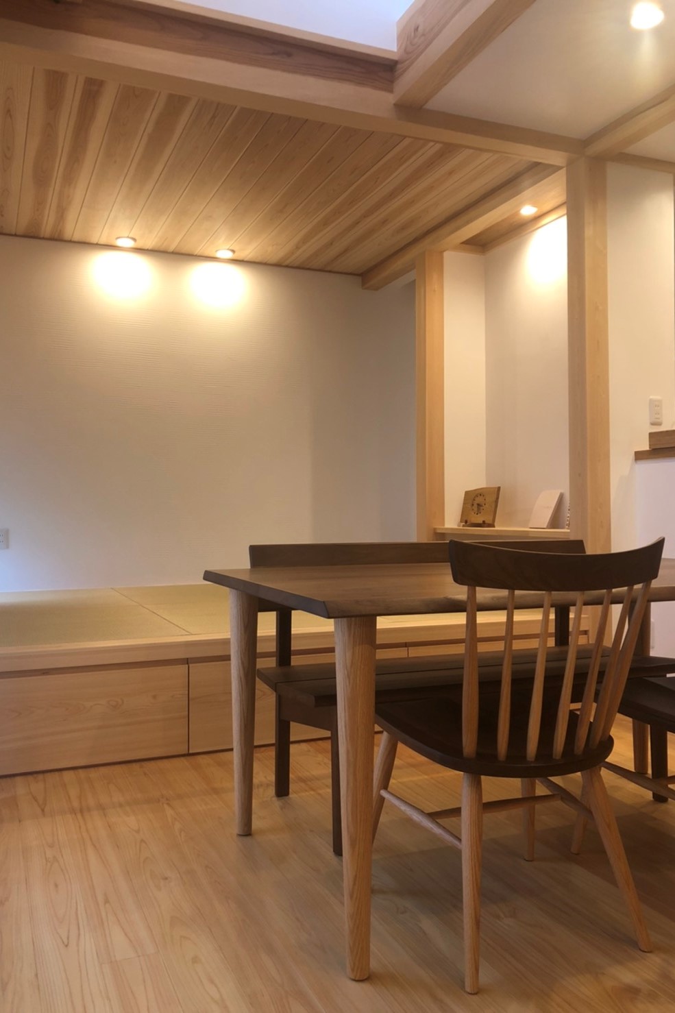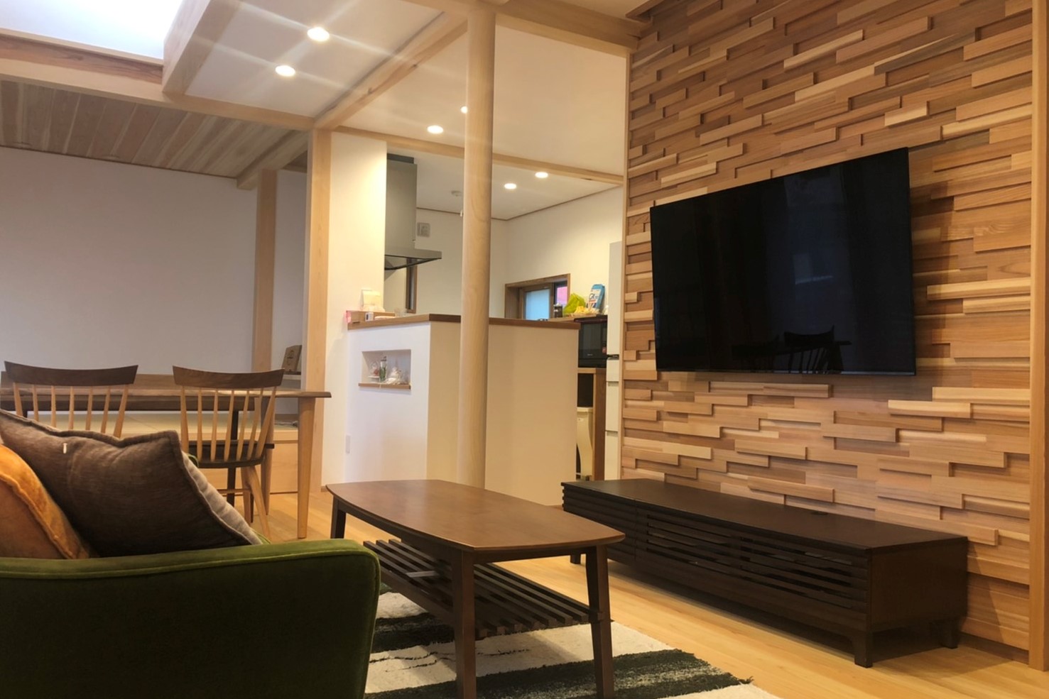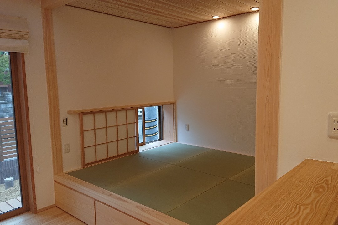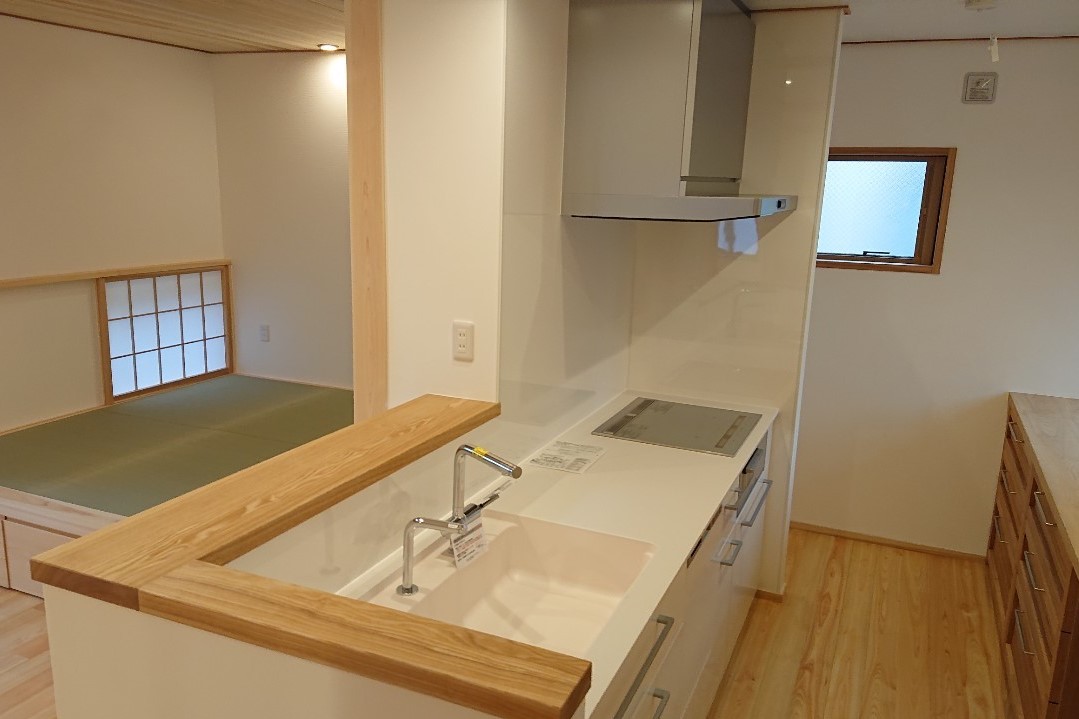 1階面積:81.15㎡(24.54坪) 2階面積:40.58㎡(12.27坪) 延床面積:121.73㎡(36.81坪) コンパクトなのに希望を全て叶えた住まい 限られた敷地内で施主様の想いを形にしました。 広がり間取りと吹抜けで広さを感じるLDKは 家族が集まる場所。 とことん自然素材にこだわり、ウッドパネルも杉の木を 使用した建具職人さんのオリジナルパネル。 その他 美しい施工実例はコチラ