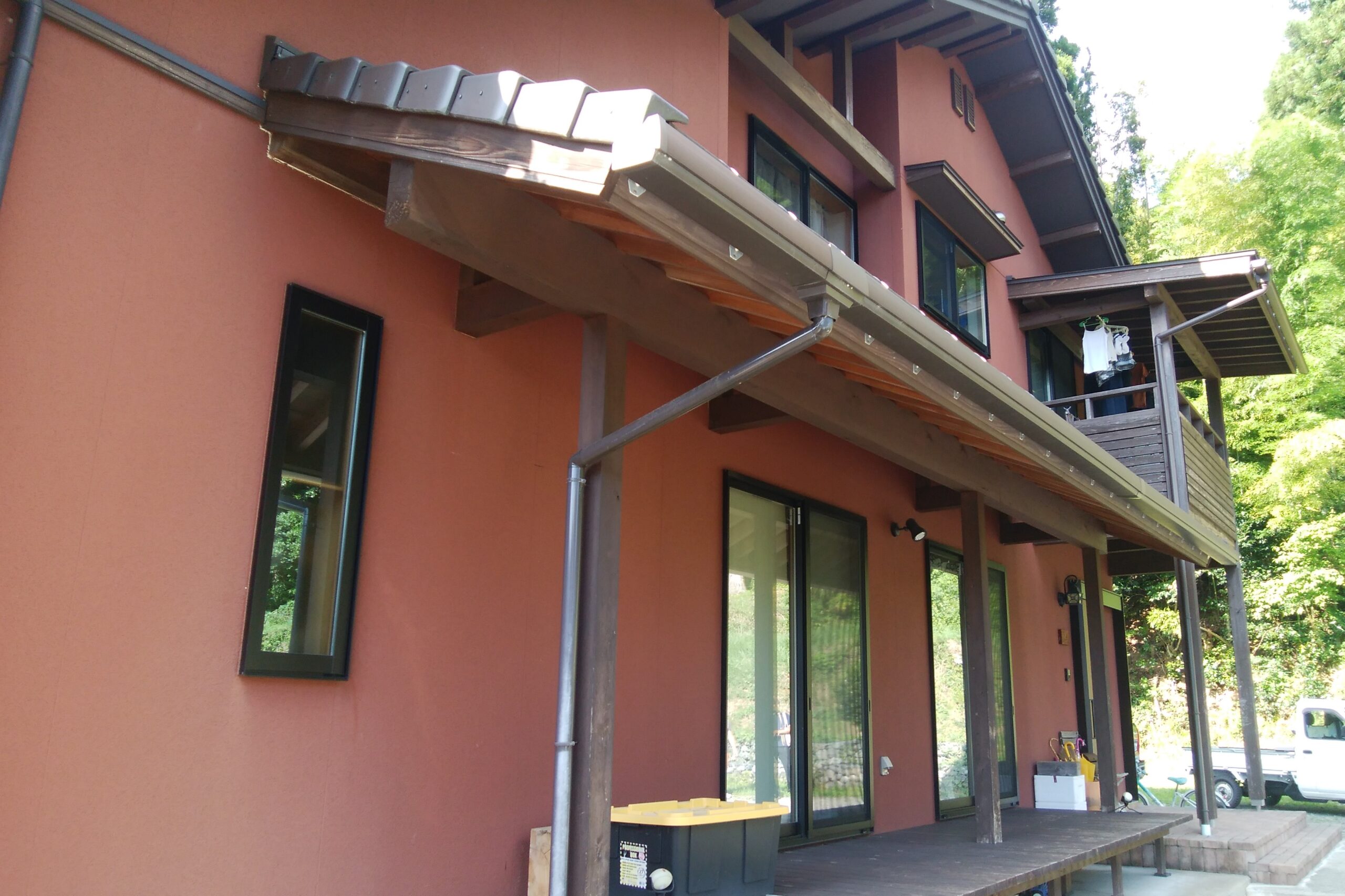 特徴的な色の外観は「木造りの家」らしさを感じない