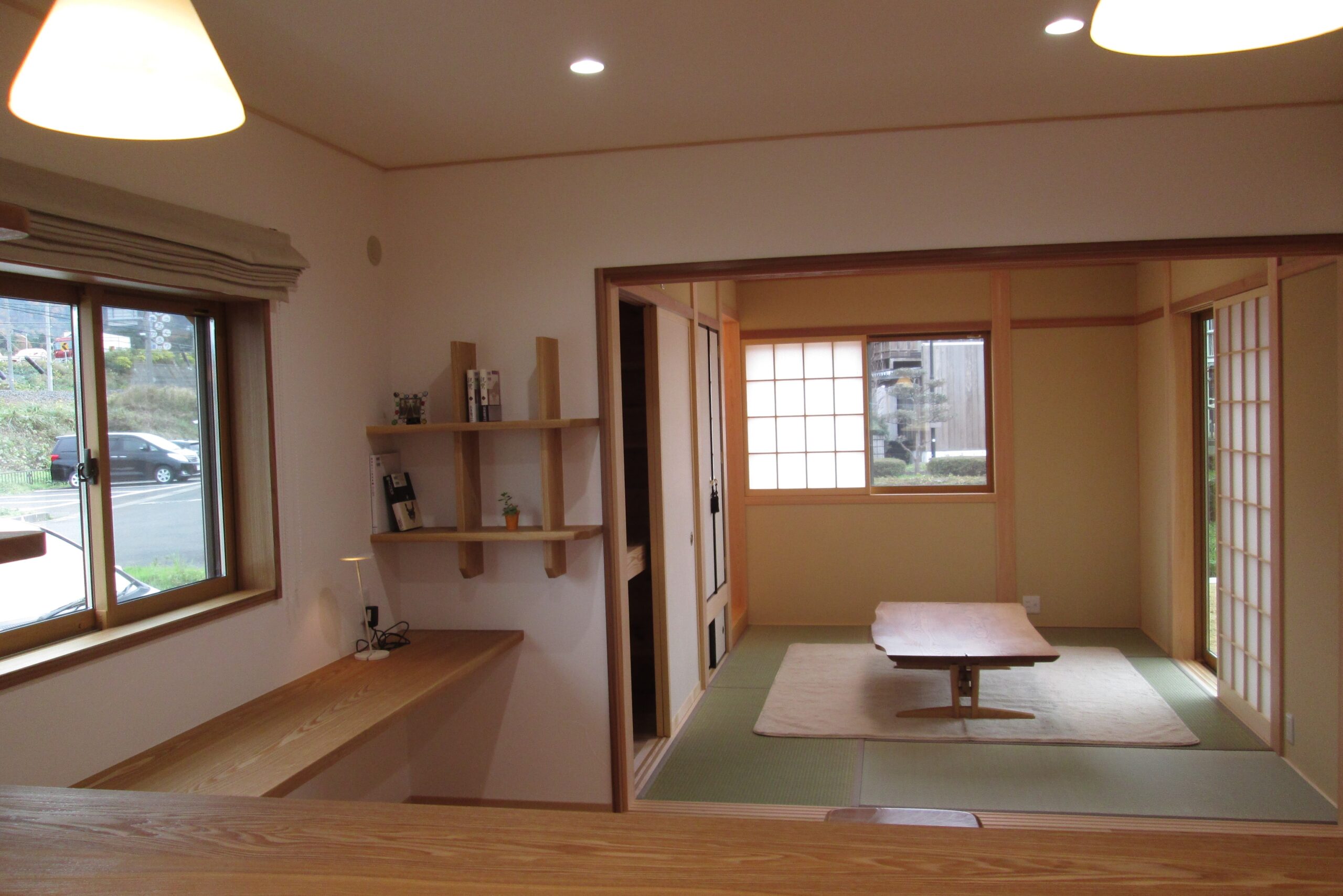 1階面積:76.31㎡(23.08坪) 2階面積:63.70㎡(19.26坪) 延床面積:140.01㎡(42.34坪) 子育てを優先した間取りでつながる家 子育て本番の時期でもあり、吹抜けは造らず子ども部屋を 優先とした間取りにしました。 家族が集まる1階の生活空間はLDKを一体とし、 タタミの間もオープンにつながる空間です。 その他 美しい施工実例はコチラ